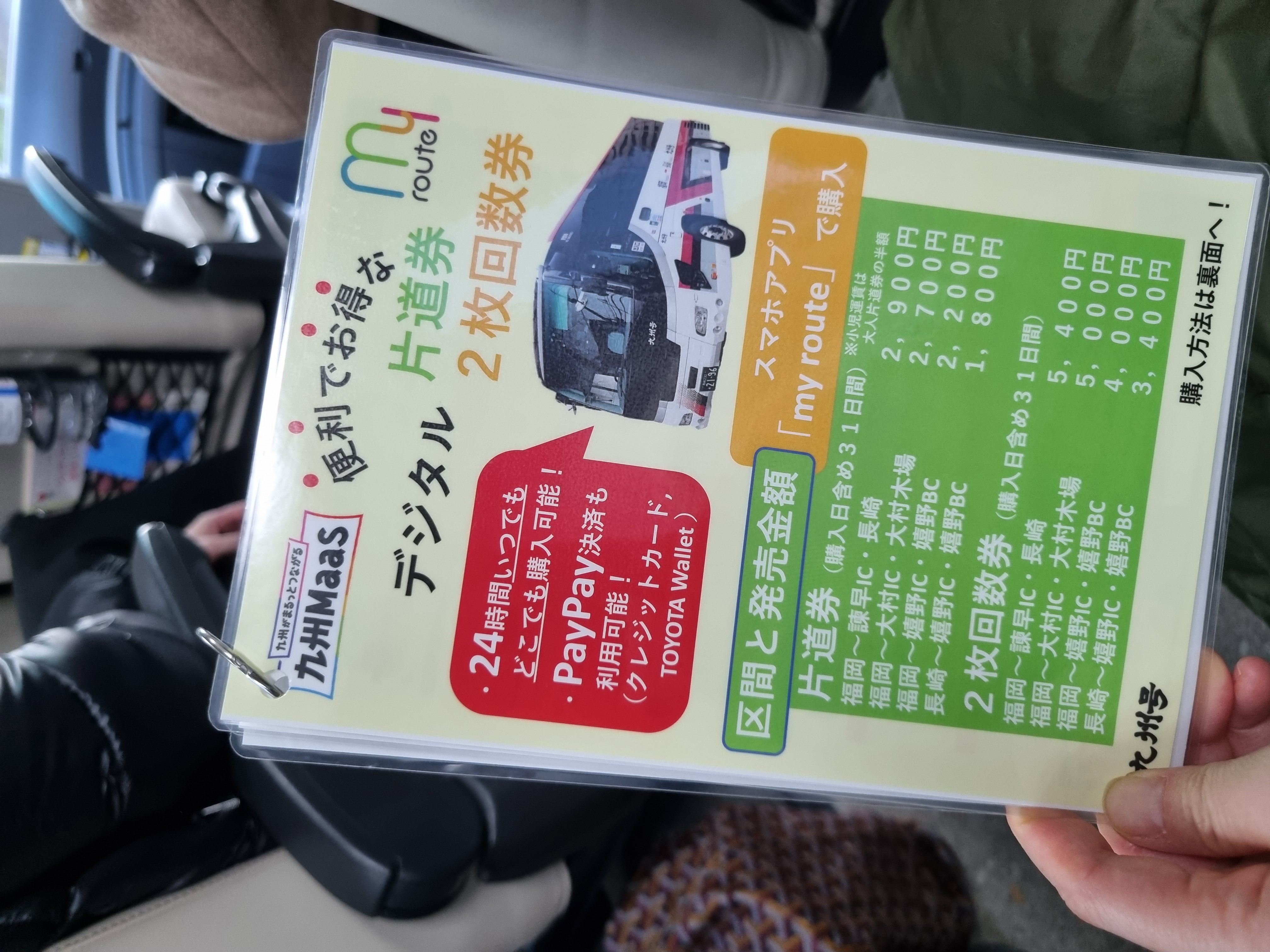 우레시노행 버스는 텐진, 하카타, 후쿠오카 공항에서 탈 수 있는데, 우레시노를 들러 나가사키까지 가는 버스이기 때문에 미리 예매를 하는 게 자리 확보에 좋다.