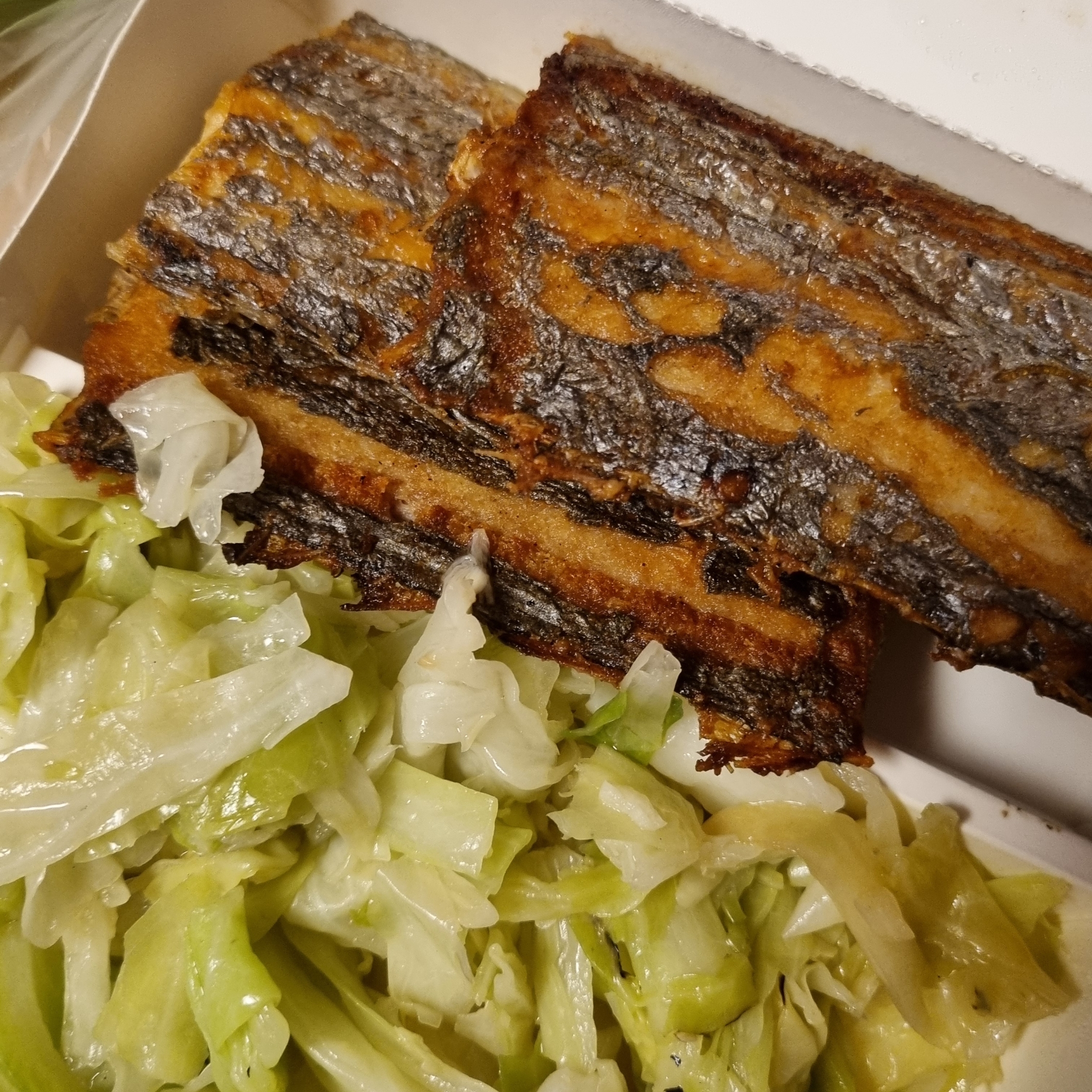 야채가 모자랄까 봐 도시락 뷔페식당에서 갈치구이와 양배추 삶은 것을 테이크 아웃했다.