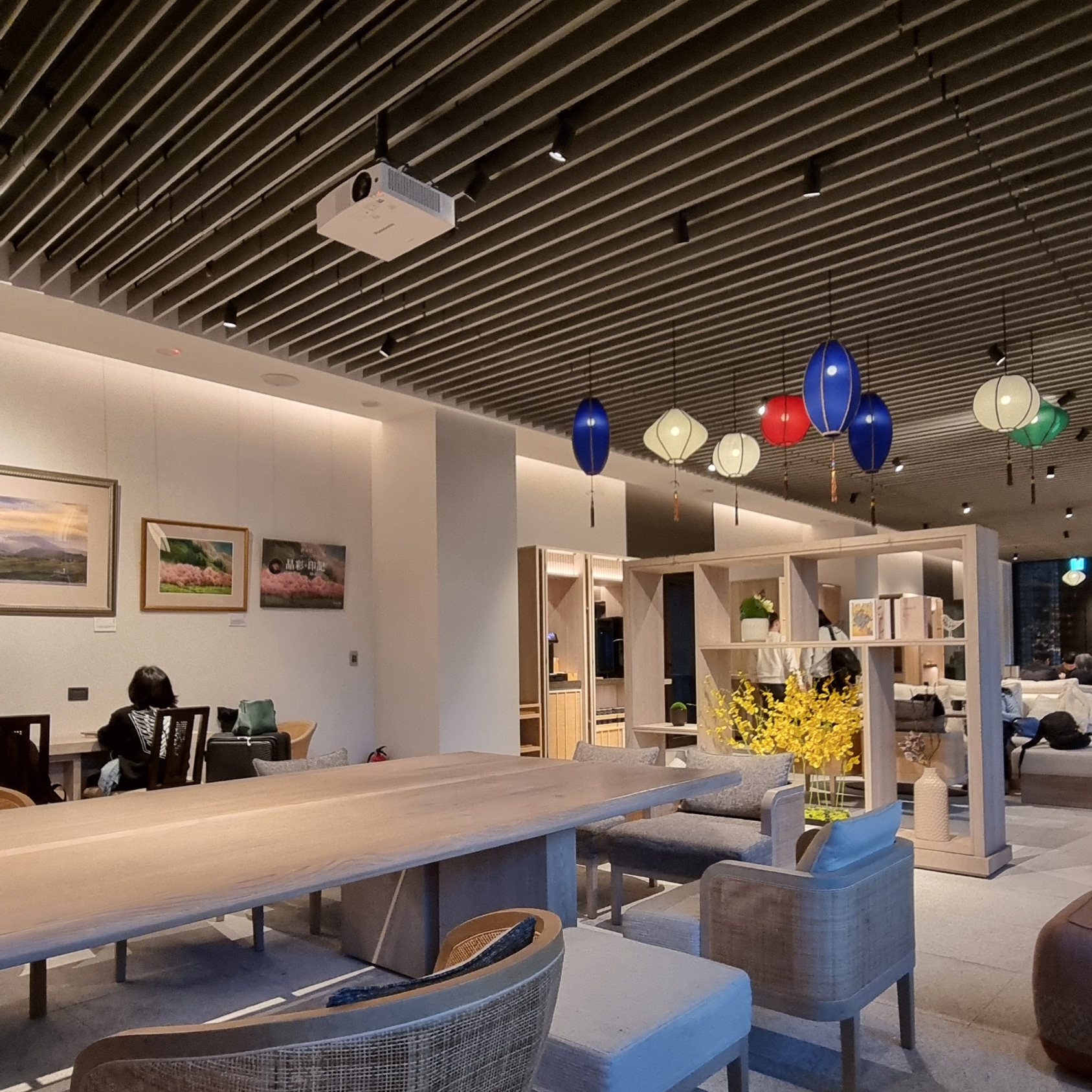 한바탕 체크인 고객들이 빠지고 난 뒤 여유 있는 라운지 모습이다.